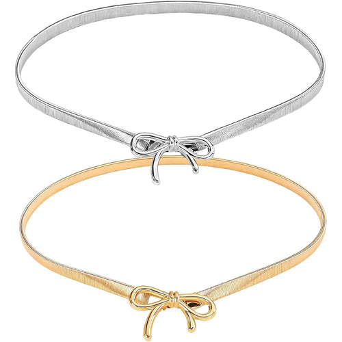 2 Pack Skinny Elastic Waist Belts With Bow Buckle For Women